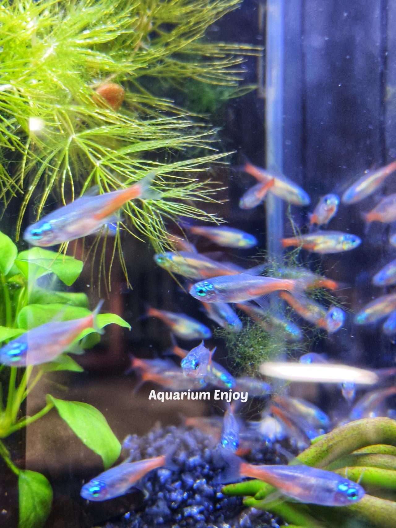 ปลาที่มีจุดเด่นตรงบริเวณหัวจะมีลักษณะสะท้อนแสงสีฟ้าเป็นประกาย เมื่อเลี้ยงรวมกันเป็นกลุ่มจะดูสวยสะดุดตาเหมือนเพชรที่เปล่งประกายระยิบระยับอยู่ในน้ำ✨